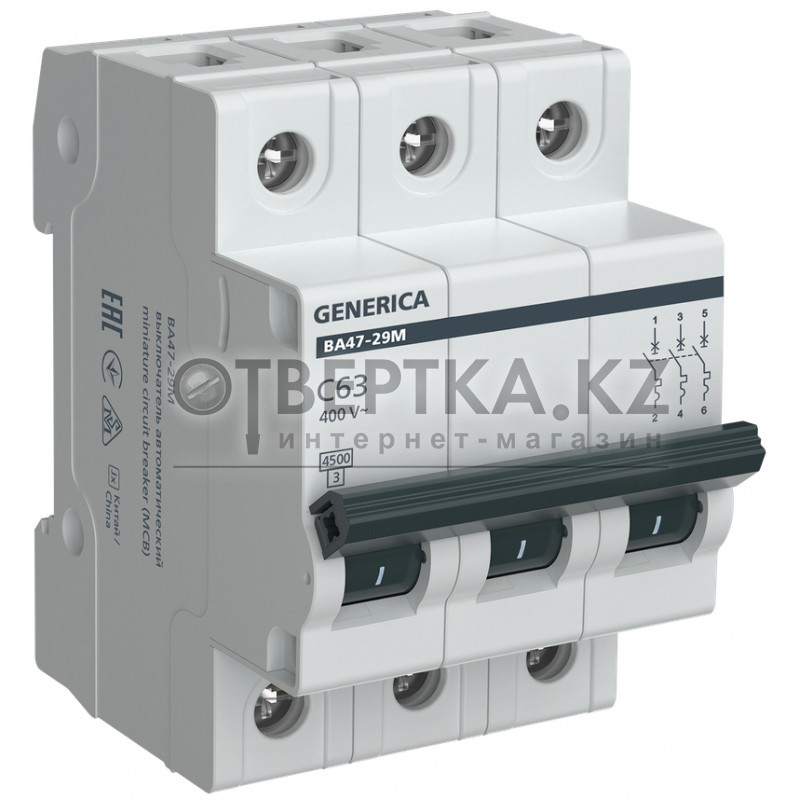 Автоматический выключатель ВА47-29М 3P 63А 4,5кА C GENERICA MVA21-3-063-C-G (63 А, 3 полюса)