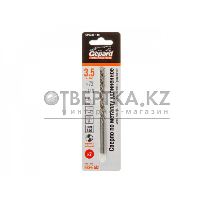 Сверло по металлу ц/х 3.5х73х110 мм удлиненное HSS-G, комплект из 2-х шт GEPARD GP0335-110