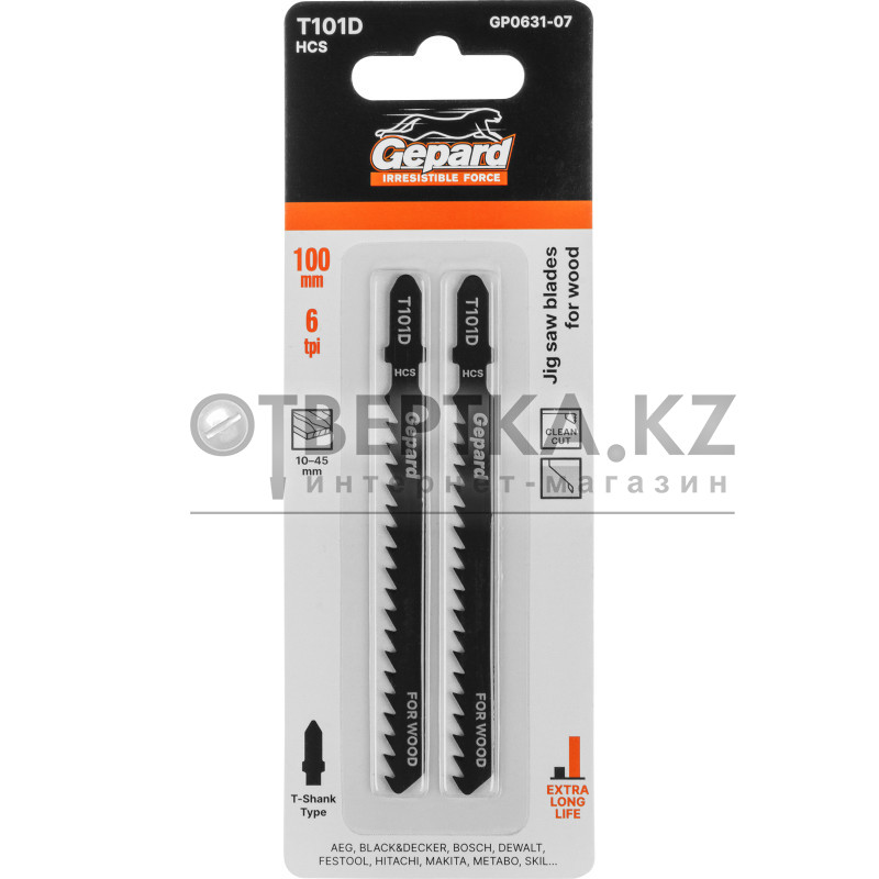 Назначение: сменный пильный элемент по дереву для электролобзиков. Используются для прямых тонких пропилов в мягкой древесине, ДСП, столярных плитах, ДВП (10 - 45 мм). Пропил прямой, тонкий, аккуратный и чистый рез.