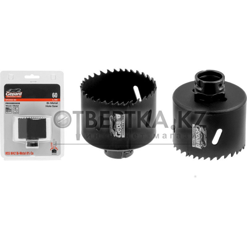 Материал режущей части коронки: HSS M42 Bi-Metal 8% Co (быстрорежущая сталь c содержанием кобальта 8%), 65-68 HRC,