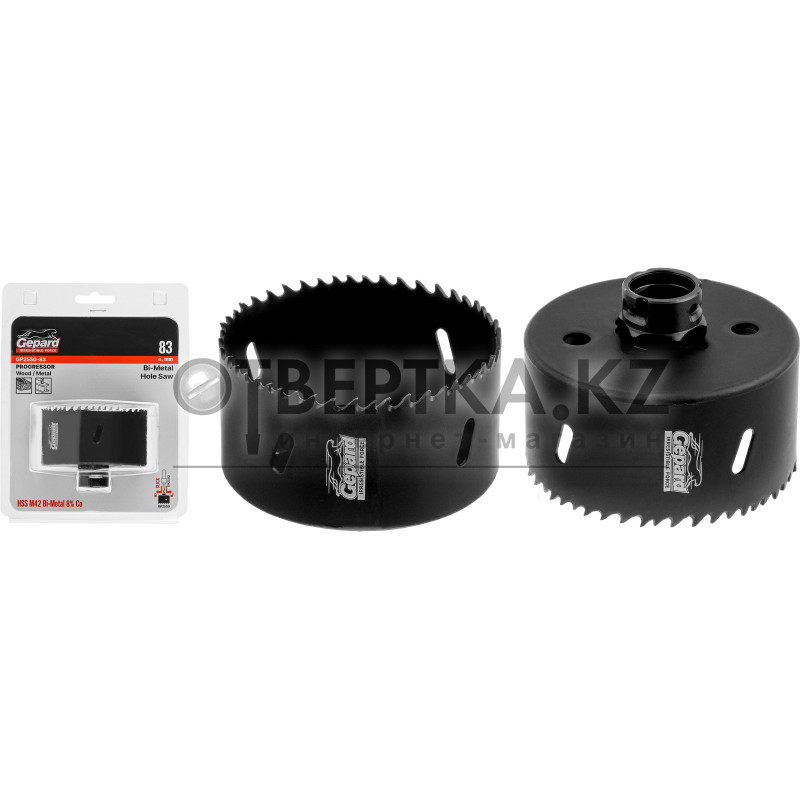 Материал режущей части коронки: HSS M42 Bi-Metal 8% Co (быстрорежущая сталь c содержанием кобальта 8%), 65-68 HRC,
