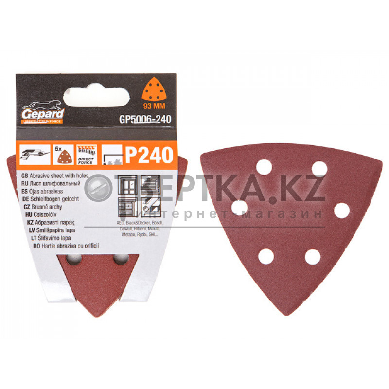 Тип: лист шлифовальный дельта под липучку, перфорированный 6 отверстий для быстрого пылеудаления,