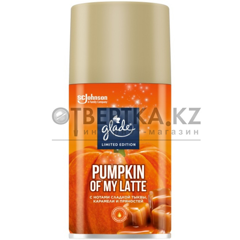 Яркий аромат с нотами сладкой тыквы, тягучей карамели и пряностей не только согреет, но и поднимет настроение. Универсальный сменный аэрозольный баллон для автоматических освежителей воздуха GLADE Automatic.