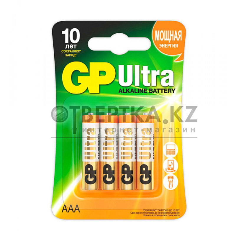 Батарейки GP Ultra Alkaline ААА служат в несколько раз дольше обычных солевых батареек благодаря марганцево-цинковой системе и щелочному электролиту. Это позволяет батарейкам долго держать заряд. GP Ultra Alkaline надежный источник питания для устройств с повышенным энергопотреблением: часов, фонариков, будильников, детских игрушек, mp-3 плееров, цифровых фотоаппаратов, компьютерных мышей и клавиатур, ПДУ, игровых мини-консолей и т. д.