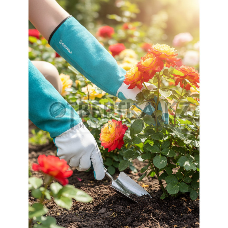 GRINDA ROSE, M (8), кожаные садовые перчатки для колючих кустарников с увеличенной крагой, усиленная ладонь и кончики пальцев, PRO Line (11304-M)
