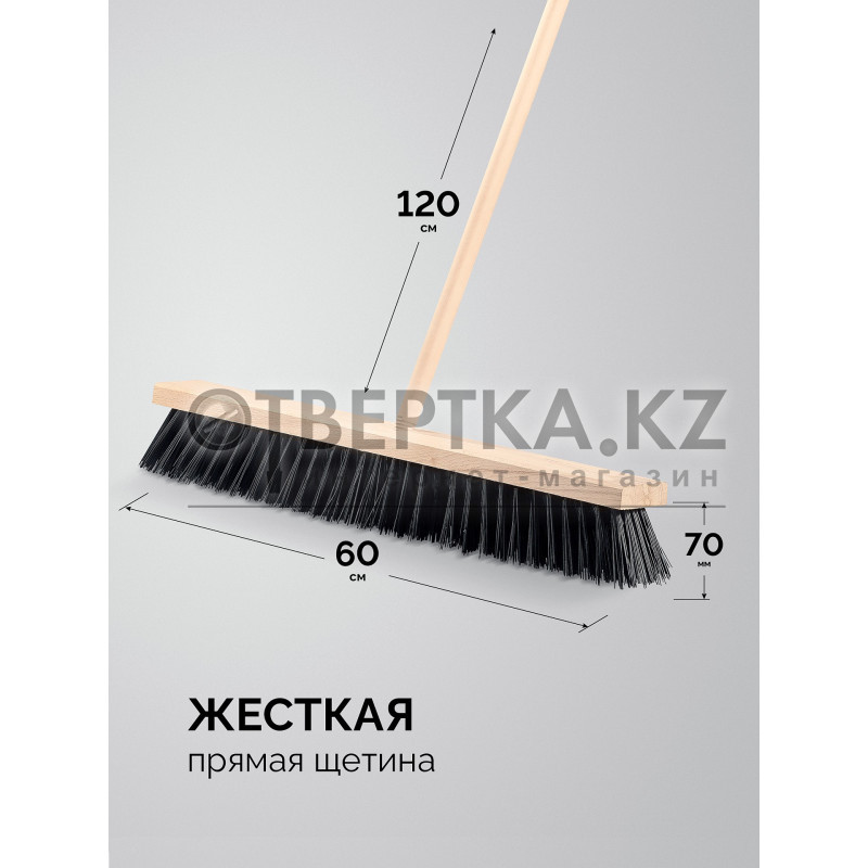 GRINDA EURO буковая колодка 60см, шлифованный черенок из берёзы 120см (d22мм) щетина 70мм, 5-рядная, уличная щётка с черенком (39251-600)