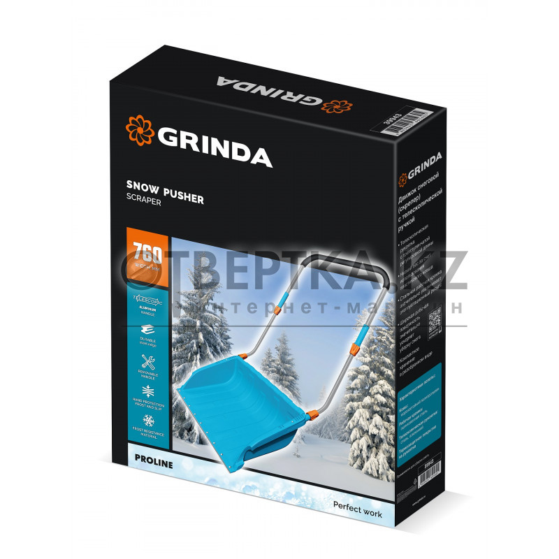 GRINDA TELESCOPIC, снеговой движок (скрепер), с телескопической ручкой, пластиковый ковш 760м, PROLine (39943)