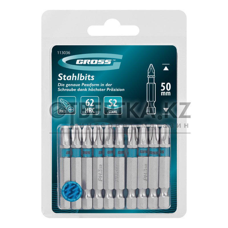 Биты PH3 х 50 мм Gross 113036 из стали S2, с шестигранным профилем, предназначены для шуруповертов и отверток-адаптеров с присоединительным шестигранником 1/4″. Биты со шлицами PH применяются для работы с саморезами по дереву, шурупами и другим резьбовым крепежом. Удлиненные насадки 50 мм удобны для работы в ограниченном пространстве и труднодоступных местах.