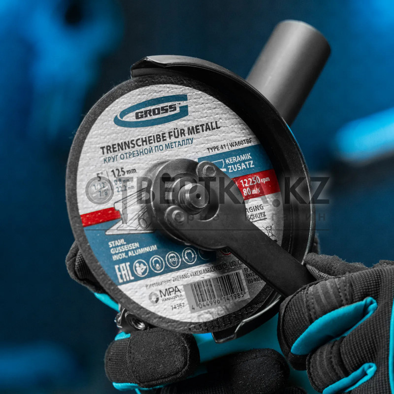 Отрезной круг по металлу Gross WA60TBF 74367 диаметром 125 мм и толщиной 0,8 мм устанавливается на фланец углошлифовальной машины с посадочным размером 22,2 мм. Рассчитан на интенсивный сухой рез углеродистых и нержавеющих легированных сталей, алюминия, чугуна. Рекомендованная максимальная частота вращения составляет 12250 об/мин. Круг выдерживает высокие нагрузки, подходит для профессиональной эксплуатации с высокими нагрузками.