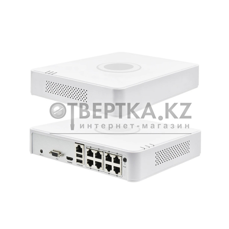- Сетевой видеорегистратор (NVR) с 8 PoE‑портами для камер IP‑видеонаблюдения, предназначен для подключения до 8 IP‑камер, записи, просмотра, воспроизведения, управления через сеть и мобильные устройства.