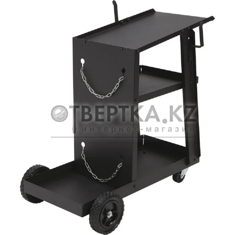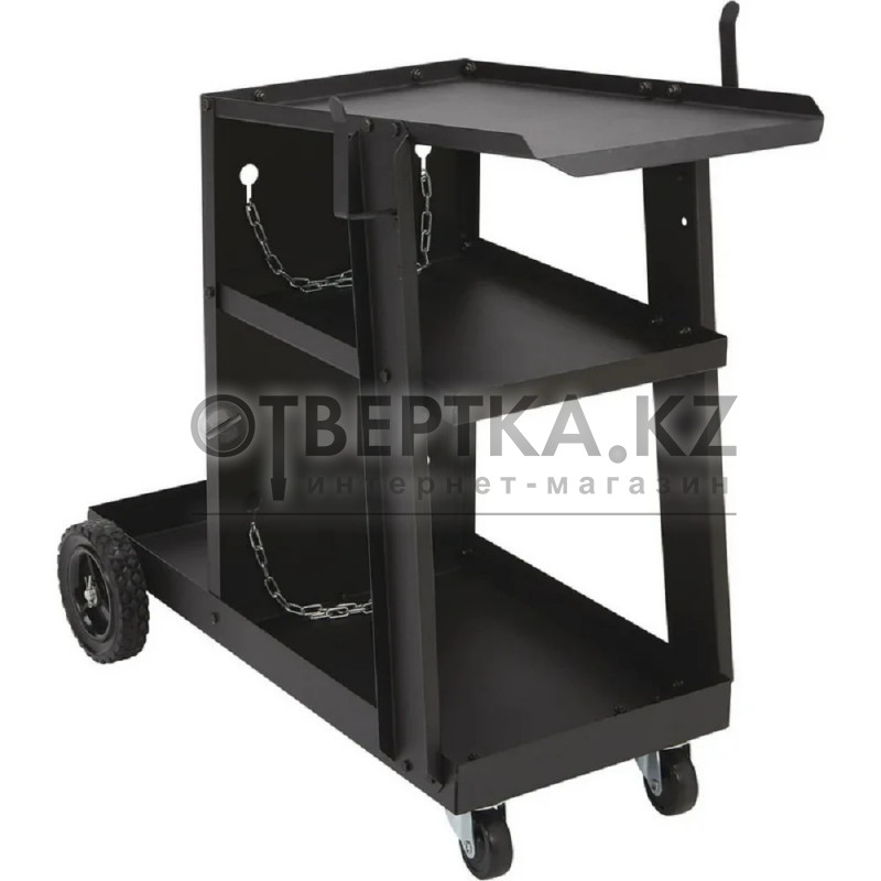 Тележка HUGONG CART-12 — прочная, устойчивая и удобная платформа для транспортировки и размещения сварочного оборудования. Подходит для большинства типов аппаратов: проволочных, аргонодуговых, электродных, а также плазменных резаков и газовых баллонов. Конструкция оснащена тремя полками для хранения инструментов и расходных материалов. Газовый баллон фиксируется двумя металлическими цепями, входящими в комплект, что обеспечивает безопасную эксплуатацию. Наклонная верхняя полка обеспечивает удобный доступ к панели управления сварочного аппарата.