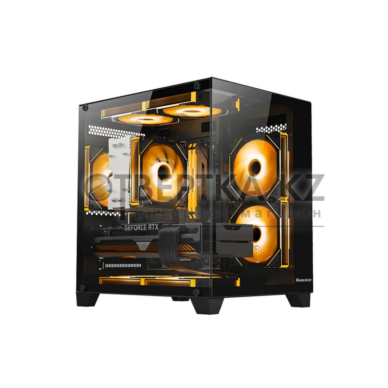 Компьютерный корпус Huntkey S900 без Б/П (Компьютерный корпус, Huntkey, S900, Micro ATX/Mini-ITX, USB 1*3.0/2*2.0, HD-Audio+Mic, Кулер 5*12см ARGB, Высота процессорного кулера до 155 мм, Длина VGA до 320мм, 2*3.5"/1*2.5", Слот 4, Толщина 0,5мм, 345x270x374мм, Без Б/П, Чёрный)