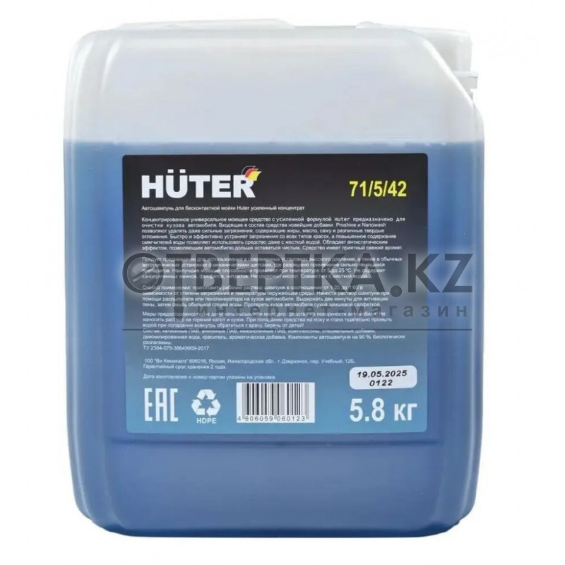 - Автошампунь усиленный концентрат Huter (Super Power Foam) — концентрированное моющее средство для бесконтактной очистки поверхностей. При разведении с водой образует мягкую пену, которая эффективно удаляет загрязнения, защищая лакокрасочное покрытие от механических повреждений.