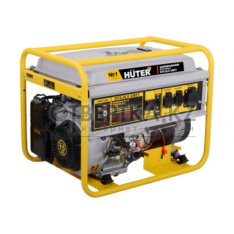 Электрогенератор Huter DY8,0LX-электростартер Grey - электрическая машина, предназначенная для автономного электроснабжения в повторно-кратковременном режиме потребителей бытового и аналогичного назначения, относящихся к классу переносных электроприемников. В качестве первичного двигателя используется карбюраторный двигатель, топливом для которого является неэтилированный бензин.