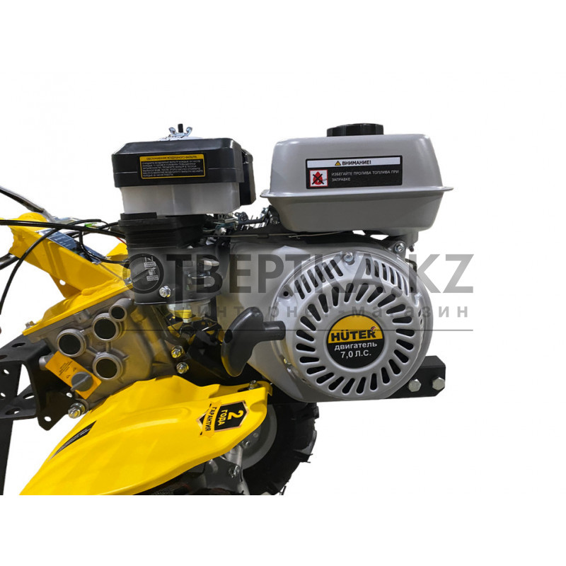 Работу агрегата обеспечивает четырёхтактный одноцилиндровый бензиновый двигатель на 7 л.с. Классическое исполнение воздушного фильтра с масляной ванной предотвращает попадание грязи внутрь цилиндра, продлевая срок службы двигателя.