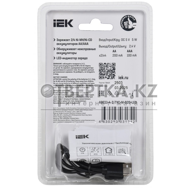 Зарядное устройство IEK обеспечивает быструю и безопасную зарядку любых никель-металлогидридных и никель-кадмиевых аккумуляторов размера «АА» и «ААА». Устройство способно заряжать 2 или 4 аккумулятора одновременно. В случае попытки зарядить нерабочие аккумуляторы устройство опознает их. Скорость зарядки составляет до 200 мА. Для использования необходимо поместить аккумуляторы в слоты соблюдая полярность и подключить к USB-разъему, провод для подключения идет в комплекте. Зарядные устройства для аккумуляторов IEK производятся в соответствии с международным стандартом IEC и проходят двойной контроль качества каждой партии. Категорически запрещается использование зарядного устройства с обычными одноразовыми батарейками любых видов!
