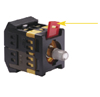 Удобство монтажа контактного модуля, который присоединяется к блоку кнопки за счет фиксации пластмассовым флажком.