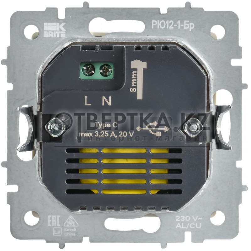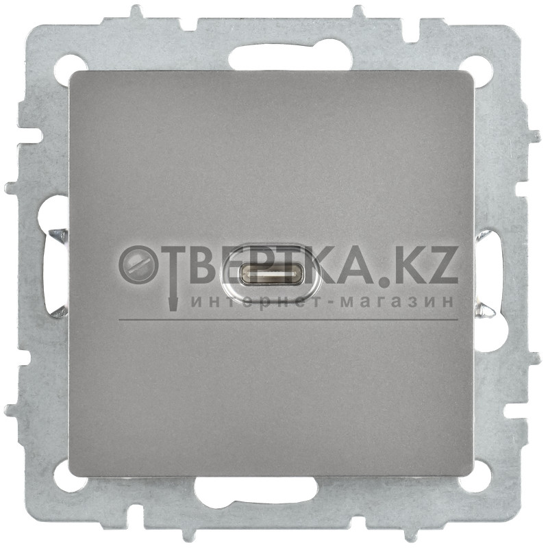 BRITE Розетка USB C 65Вт высокоскоростная зарядка РЮ12-1-БрС сталь IEK BR-U13-065-K46 (без заземления)