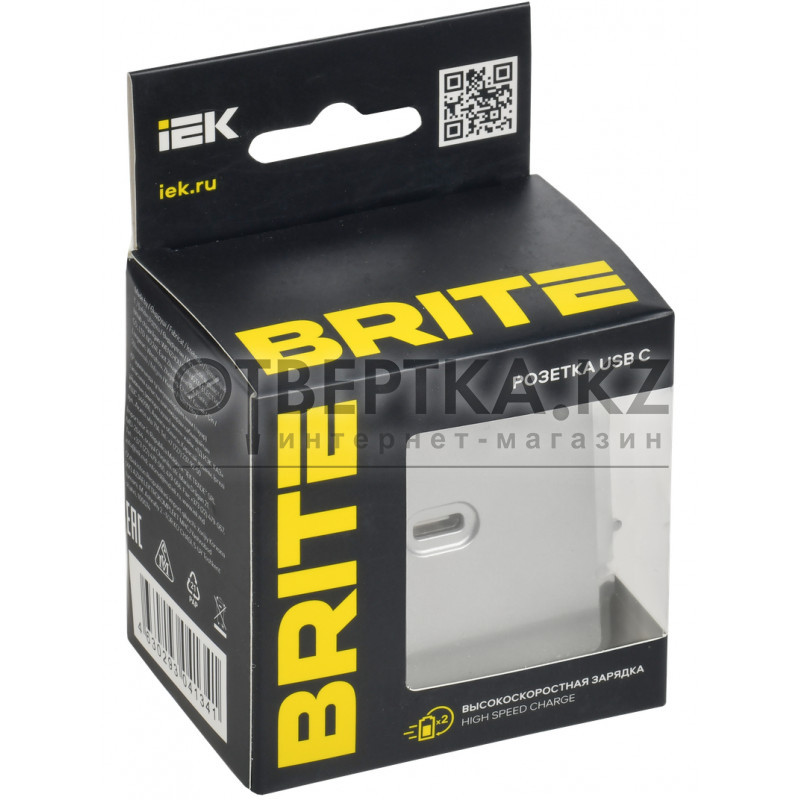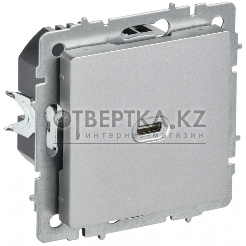 BRITE Розетка USB C 65Вт высокоскоростная зарядка РЮ12-1-БрА алюминий IEK BR-U13-065-K47 (без заземления)