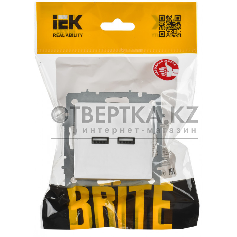 BRITE Розетка USB AA 5В 3,1А РЮ10-1-БрАБ арктический белый IEK BR-U21-D31-K91 (без заземления)