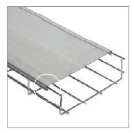 Верхняя продольная проволока немного выступает за габариты лотка, что позволяет использовать совместно с лотком замковую крышку. Замок на крышке позволяет ей надежно держаться при вертикальном монтаже кабельной трассы.