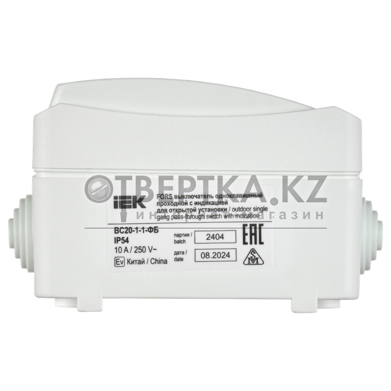 FORS Выключатель 1-клавишный проходной с индикацией для открытой установки 10А IP54 ВС20-1-1-ФБ белый IEK EVS11-K01-10-54-DC