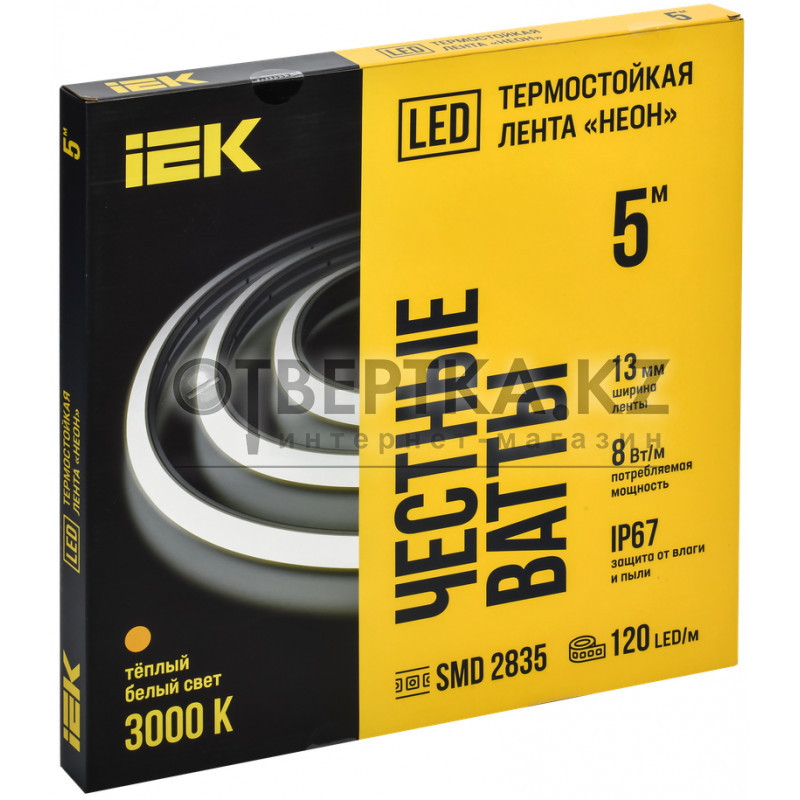 Лента светодиодная "неон" термостойкая 5м SMD2835 120LED/м 8Вт/м IP67 13мм 24В теплый белый IEK LSR6-1-120-67-2-05