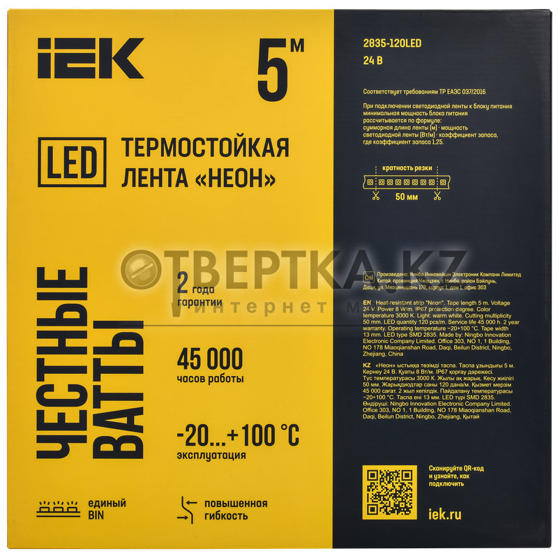 • Высокая степень защиты IP67: "неон" не боится пыли и влаги.