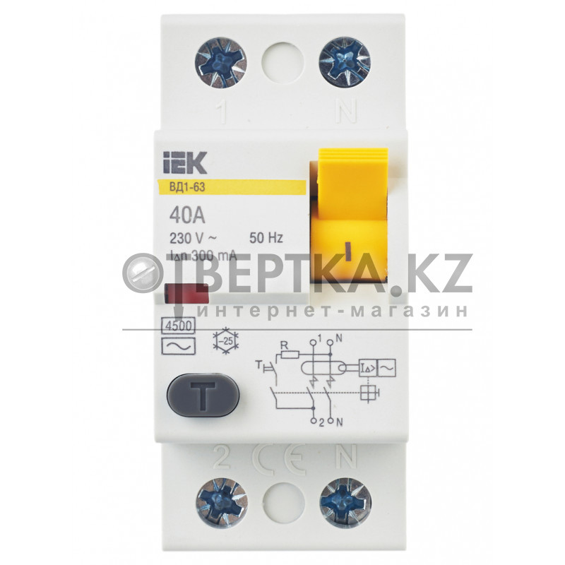 Выключатель дифференциальный (УЗО) ВД1-63 2Р 40А 300мА IEK MDV10-2-040-300 (40 А, 2 полюса)