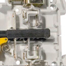 Увеличенная прочность корпуса в зоне присоединения проводников за счет двух дополнительных заклепок и монолитной лицевой панели.