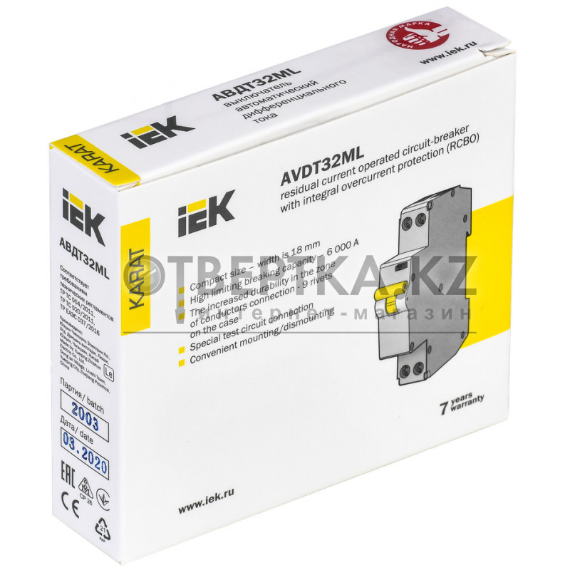 Выключатель автоматический дифференциального тока АВДТ32МL C10 30мА KARAT IEK MVD12-1-010-C-030 (10 А, 2 полюса)
