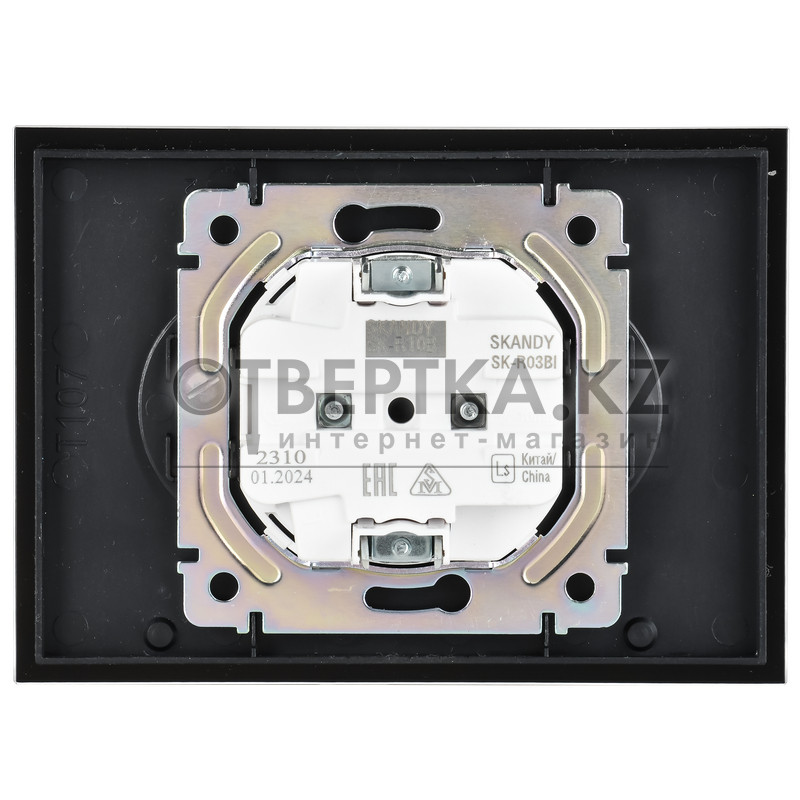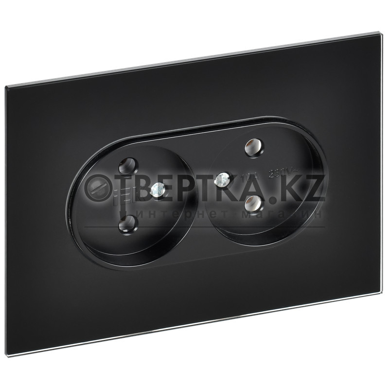 SKANDY Розетка 2-местная без заземления без защитных шторок для плоской вилки 10А SK-R03Bl стекло черный IEK SK-R20-10-K02 (без заземления)
