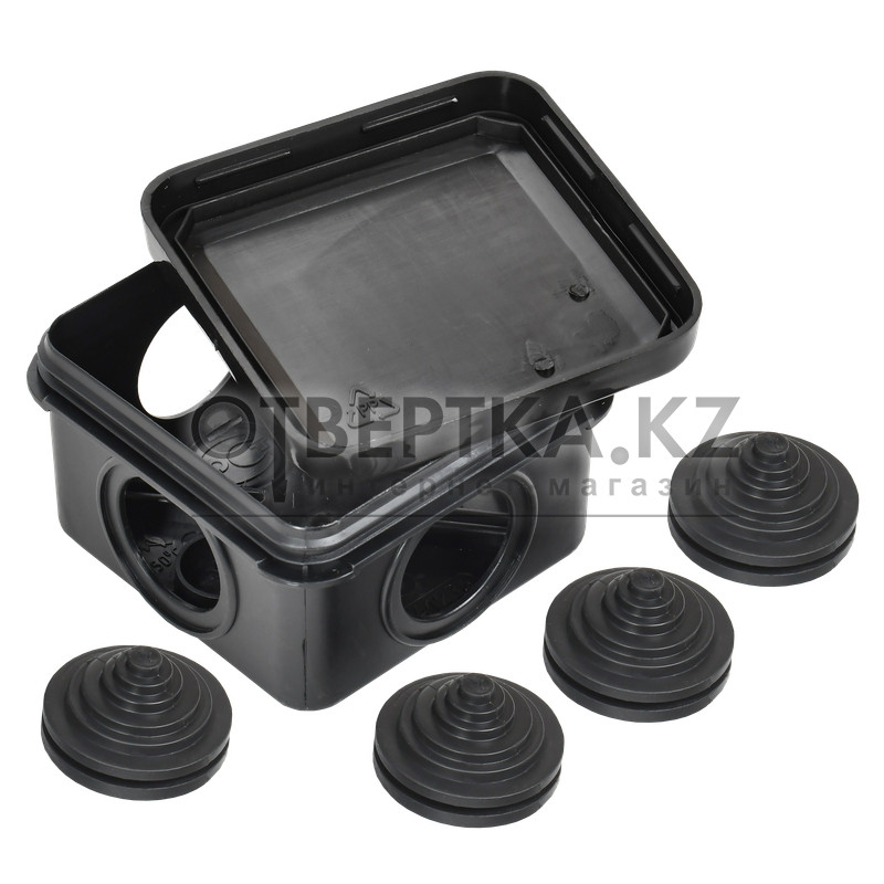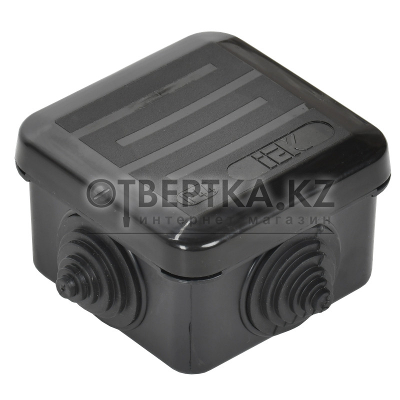 Коробка распаячная КМ41236 для открытой проводки с защелкивающейся крышкой безгалогенная (HF) 70х70х40мм IP44 4 гермовводов черная (RAL 9005) IEK UKO21-070-070-040-K02-44