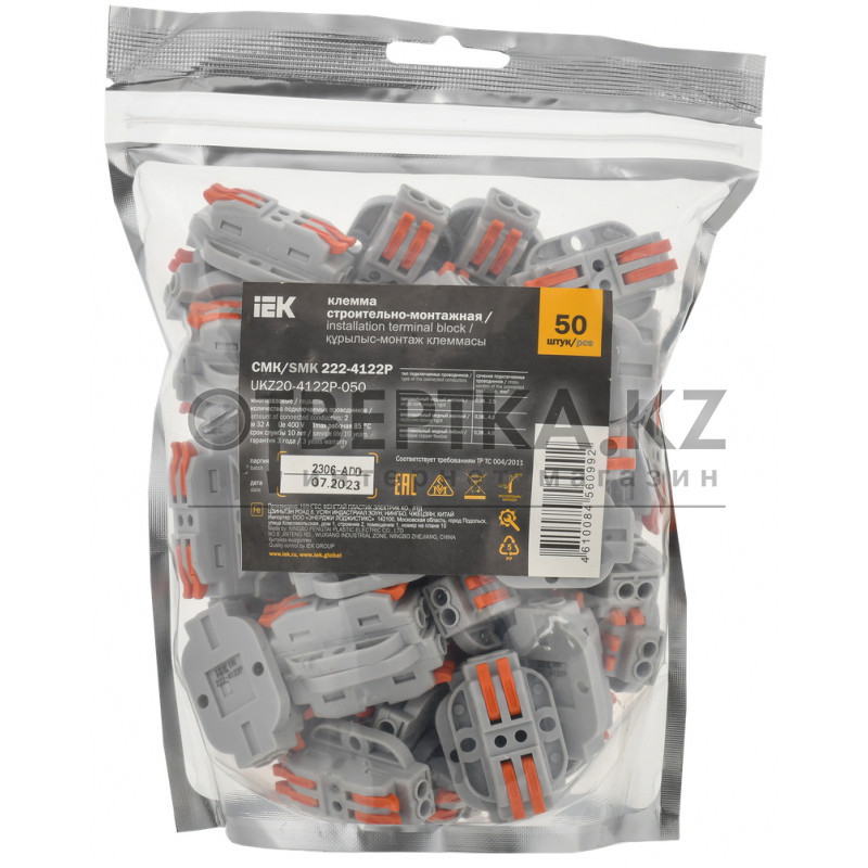 Строительно-монтажная клемма СМК 222-4122P проходная с площадкой (50шт/упак) IEK UKZ20-4122P-050