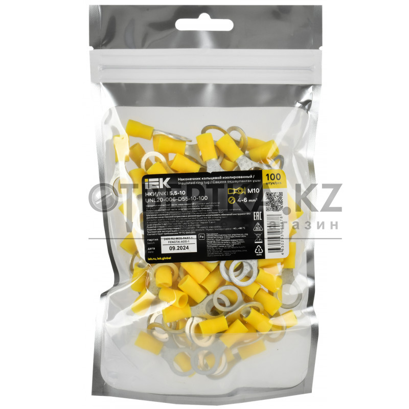 Наконечник кольцевой предназаначен для оконцевания опрессовкой проводов с медными жилами и используется при монтаже электрических узлов, где предусмотрено соответствующее контактное соединение на основе винтовой фиксации.