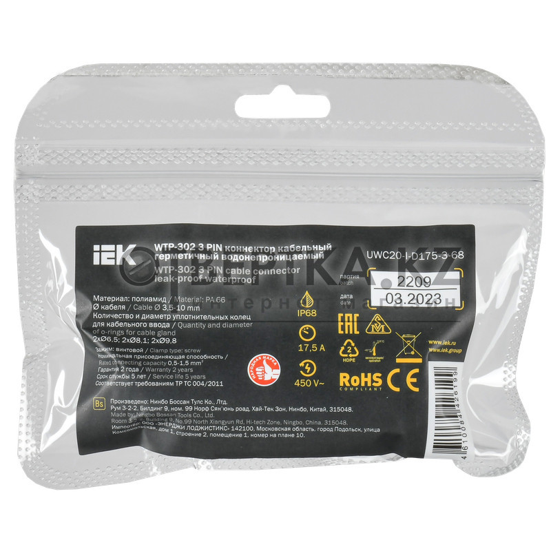 Коннектор кабельный герметичный WTP-302 IP68 с 3 контактами предназначен для соединения и распределения электрических проводников, которым требуется обеспечить полную герметичность и защиту кабеля. Имеет винтовой тип зажима.