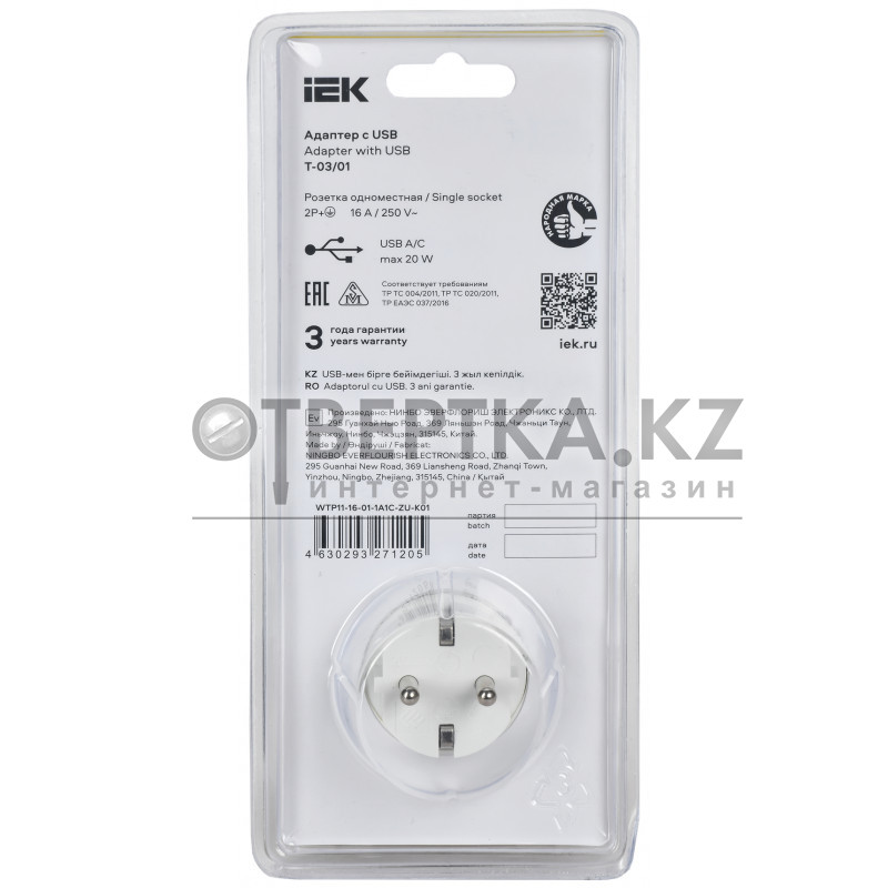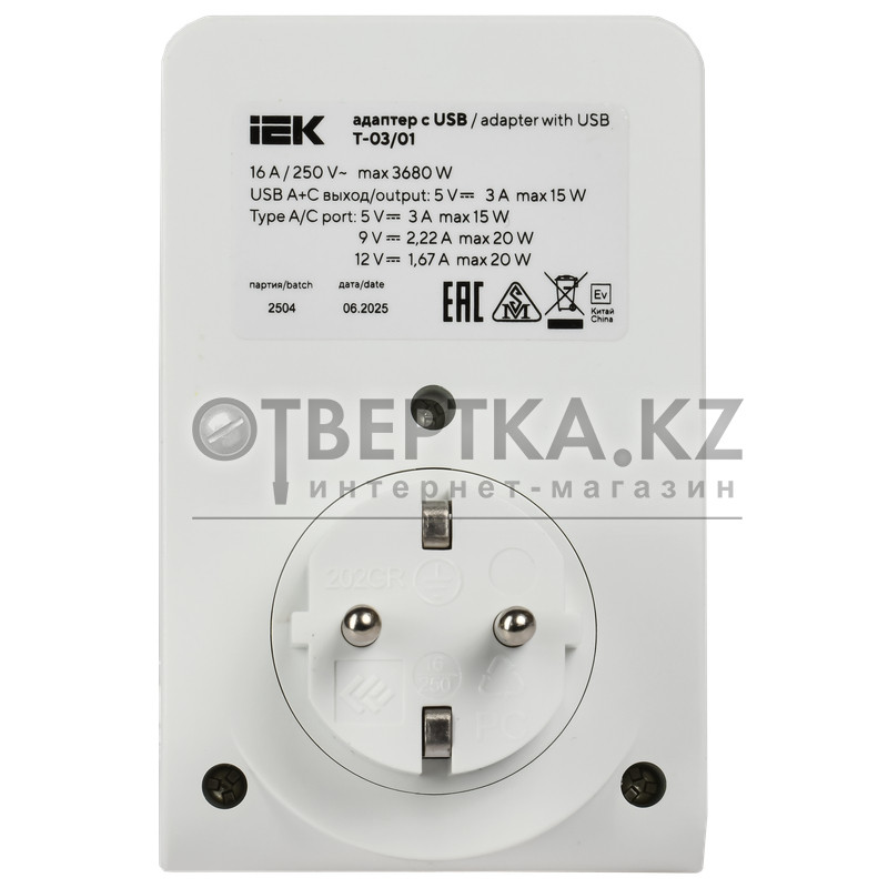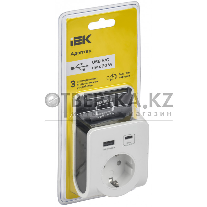 Адаптер IEK Т-03/01 WTP11-16-01-1A1C-ZU-K01 (2PPE 16А 2хUSB AC 20Вт с подставкой бело-черный )
