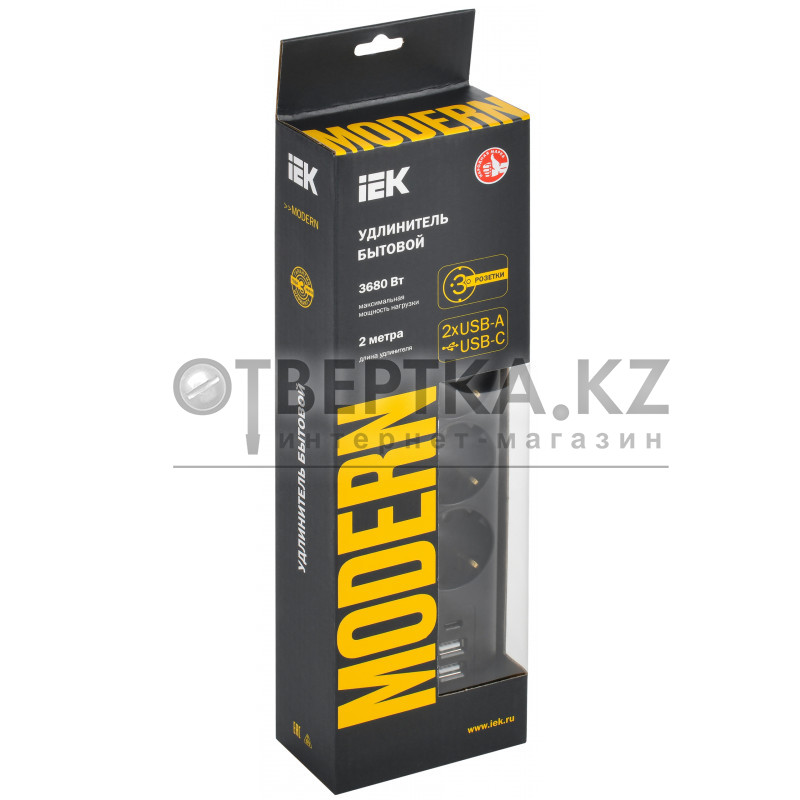 Удлинитель MODERN У03В IEK WYP12-16-03-02-ZKU-K02 (3 места, 3х1,0мм2, 2 м, с заземлением)