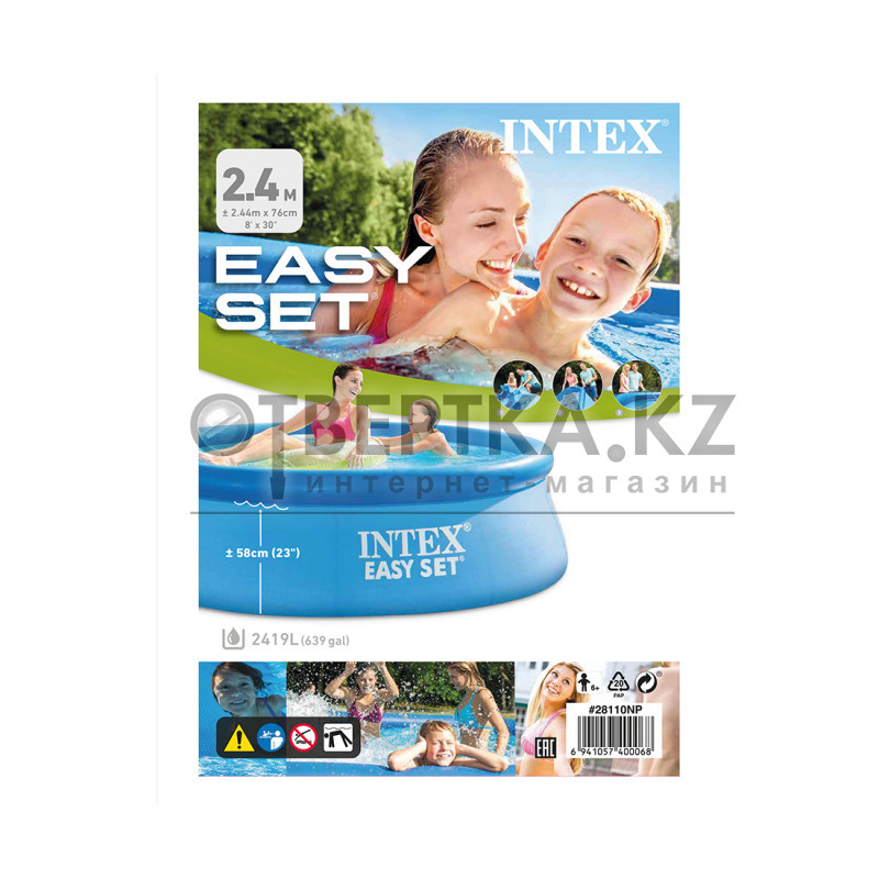 Надувной бассейн Intex 28110NP (Семейный надувной бассейн Easy Set 244 x 76 см, INTEX, 28110NP, Винил, 2419 л., Голубой, Цветная коробка)