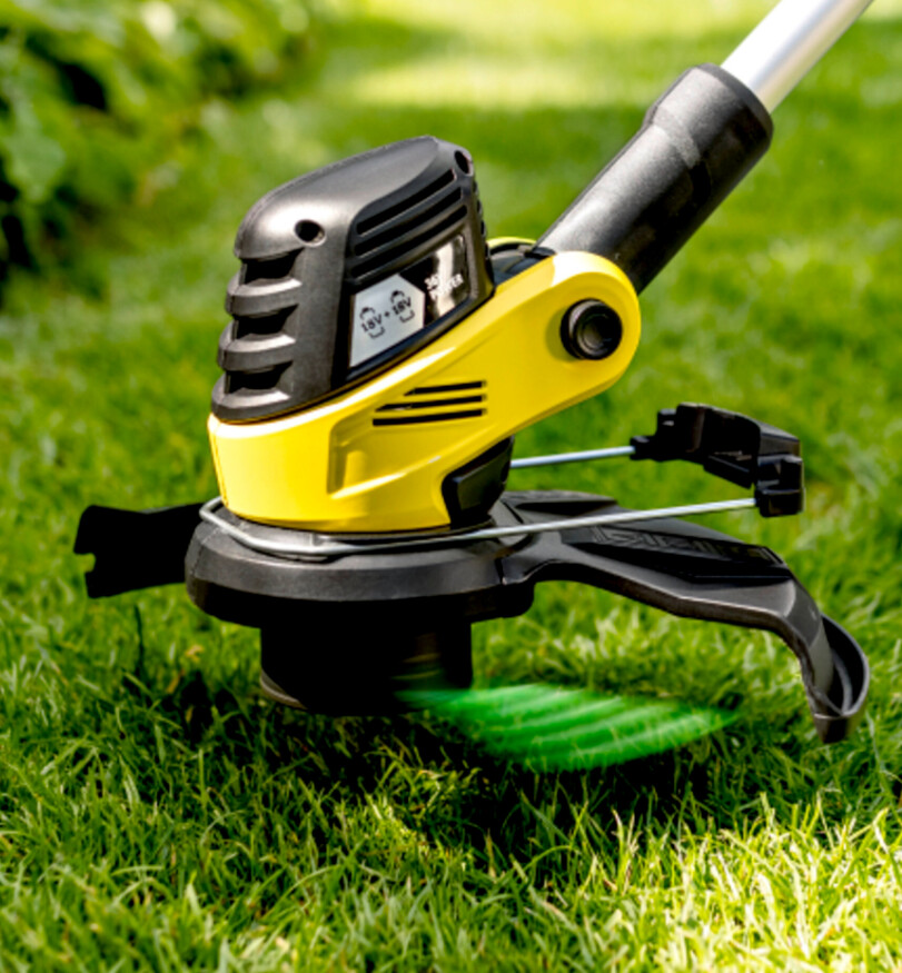 Поворотная головка триммера позволяет аккуратно обрабатывать края газона вдоль дорожек или террас.