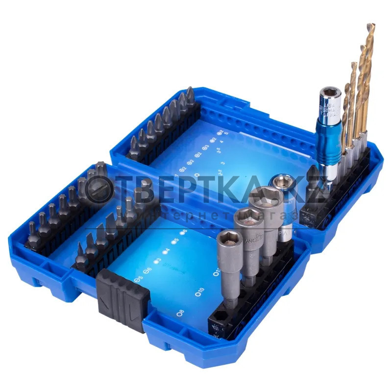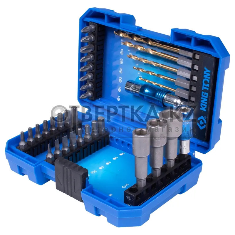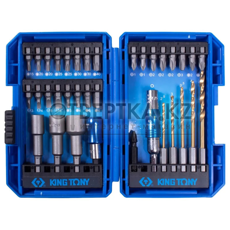 Набор бит и сверл KING TONY 35шт. 1035MR - служит для комплектования шуруповёрта и наборов ручного инструмента. Предметы набора расположены в прочном кейсе, каждый в своей ячейке для удобства и быстрого поиска. Кейс изготовлен из пластика ABS – легкого материала, обладающего высокими прочностными характеристиками, стойкостью к маслам и растворителям. Кейс удобен для хранения вставок, а также защитит от их утери.