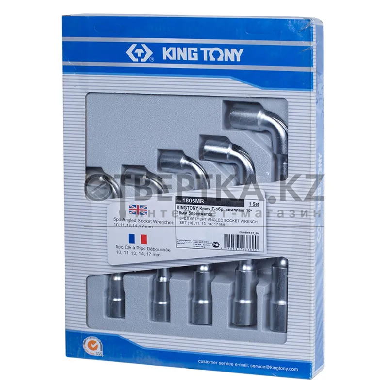 Набор торцевых L-образных ключей KING TONY 10-17 мм 5 предметов 1805MR - надёжный помощник в работе с крепежом в труднодоступных местах. Прочный корпус из хром-ванадиевой стали выдерживает высокие нагрузки, а Г-образная форма упрощает откручивание даже закисших соединений.