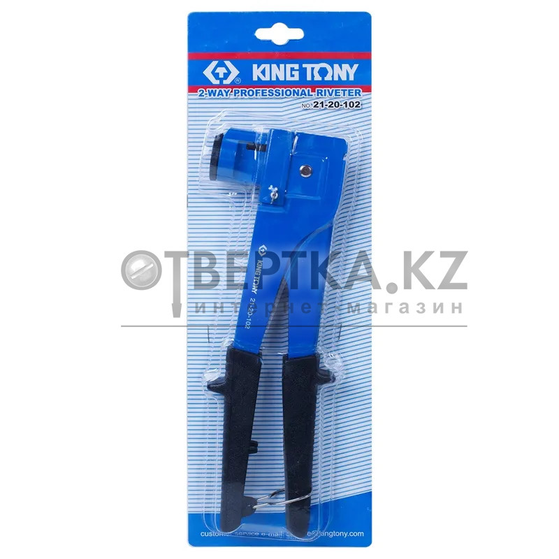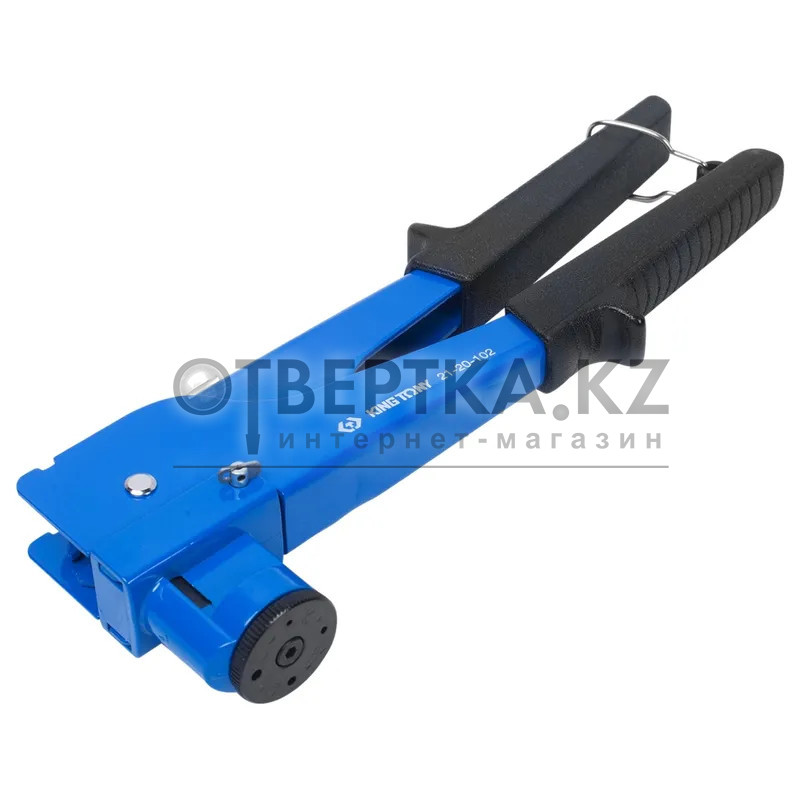 Заклепочник поворотный KING TONY 2.4-4.8мм 21-20-102 - предназначен для соединения листового металла, деталей конструкций, а также для выполнение монтажных работ различного характера. В качестве соединительных элементов применяются потайные заклёпки вытяжного типа. Заклёпочник оснащён зажимными губками из твёрдосплавной стали, специальным ключом, а также поворотной конструкцией головки револьверного типа, позволяющей работать под углами 90° и 180°.