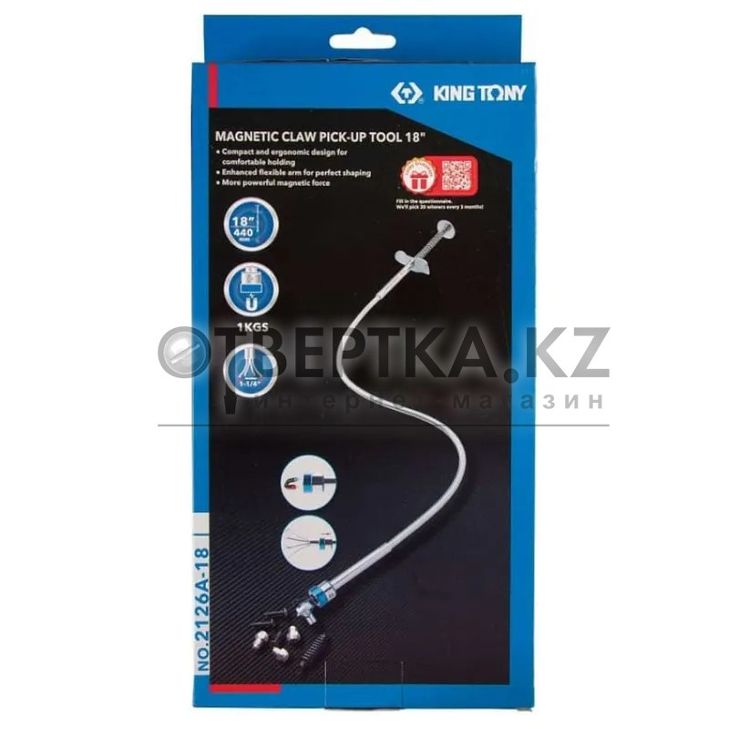 Захват на гибком стержне магнитный KING TONY 440мм 2126A-18? - служит для извлечения металлических предметов из труднодоступных мест. Конструкция стержня позволяет с легкостью огибать препятствия. Захват выполнен из качественной нержавеющей стали, что обеспечивает надежность и долговечность. Используется на станциях технического обслуживания, автосервисах, автомастерских и в бытовой сфере.