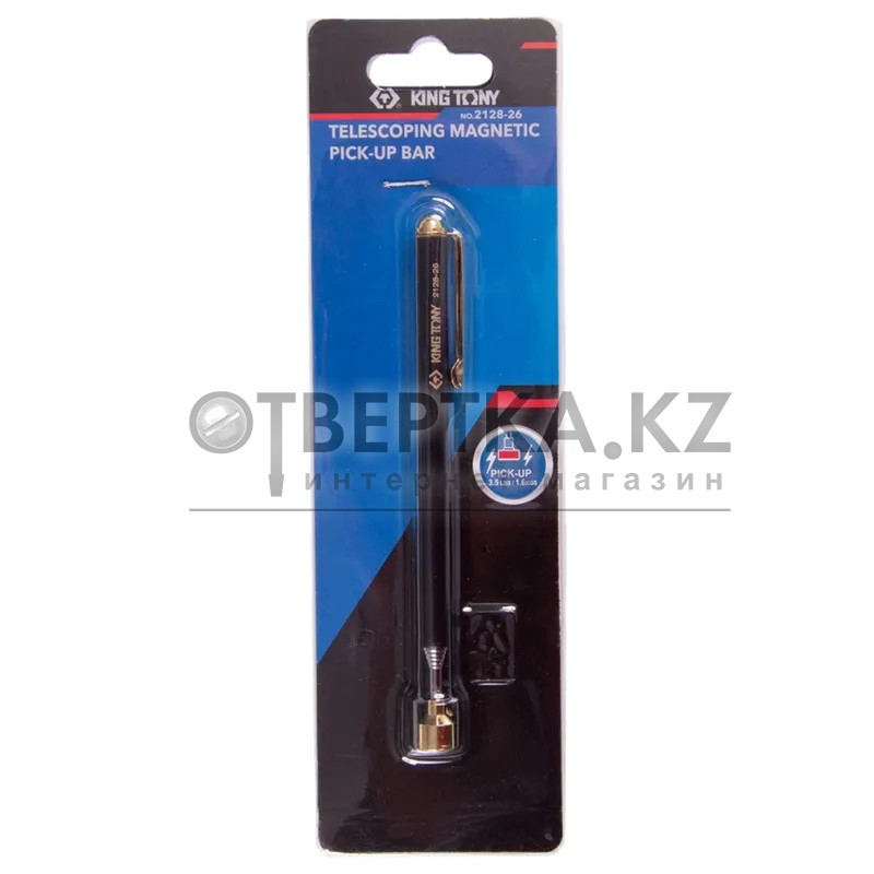 Телескопический магнитный извлекатель KING TONY 130-640мм 1.6кг 2128-26 - представляет собой надежный вспомогательный инструмент при различных работах. Магнит поможет достать упавшую деталь в недра двигателя автомобиля, крепеж в мастерской и другие упавшие детали. Рабочая часть магнита выполнена из качественной стали. Хромированное покрытие обеспечивает защиту от коррозии. Зажим на корпусе позволяет удобно носить инструмент на рабочей одежде.