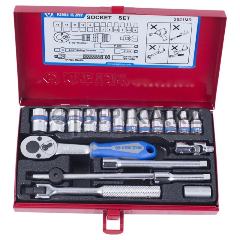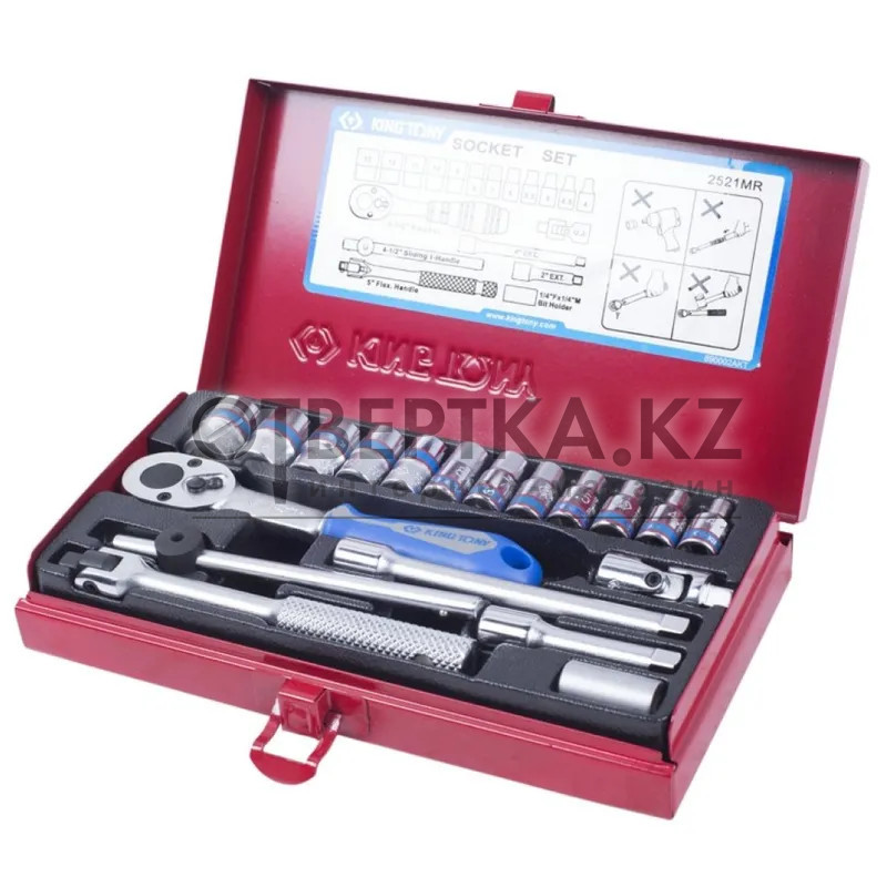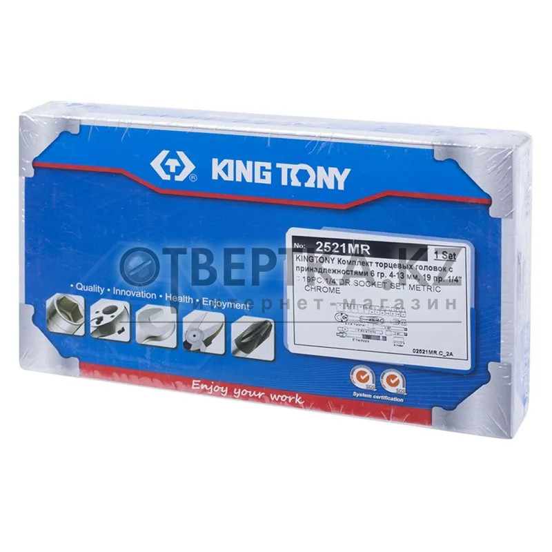 Набор торцевых головок KING TONY с принадлежностями 1/4" шестигранные 4-13 мм 19шт. 2521MR