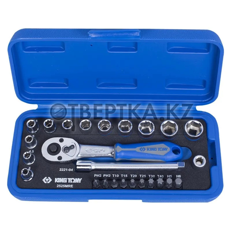 Набор торцевых головок KING TONY с принадлежностями 1/4" шестигранные 4-13 мм 25 шт. 2525MR 2525MRE