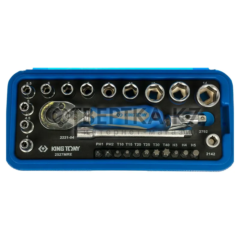 Набор торцевых головок KING TONY с принадлежностями 1/4" шестигранные 4-14 мм 27 шт. 2527MR 2527MRE