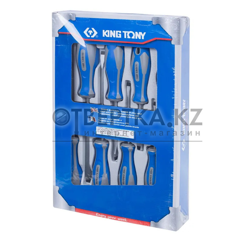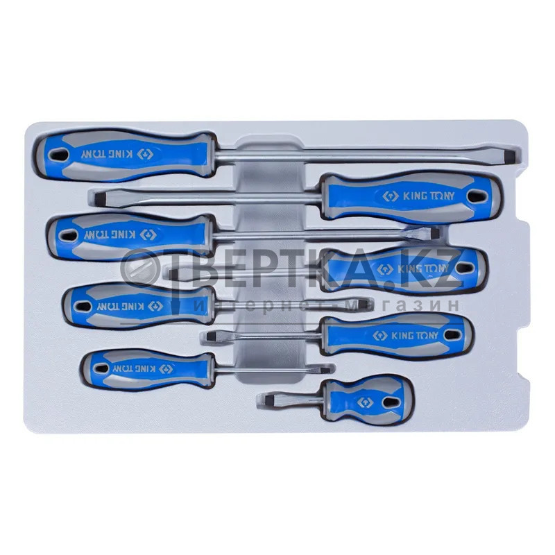 Набор отверток KING TONY 8 предметов 30118MR - служит для проведения ремонтных, сборочных или демонтажных работ с применением плоских винтов. Изделия имеют эргономичные, нескользящие рукоятки и прочные стальные стержни, защищенные от коррозии.
