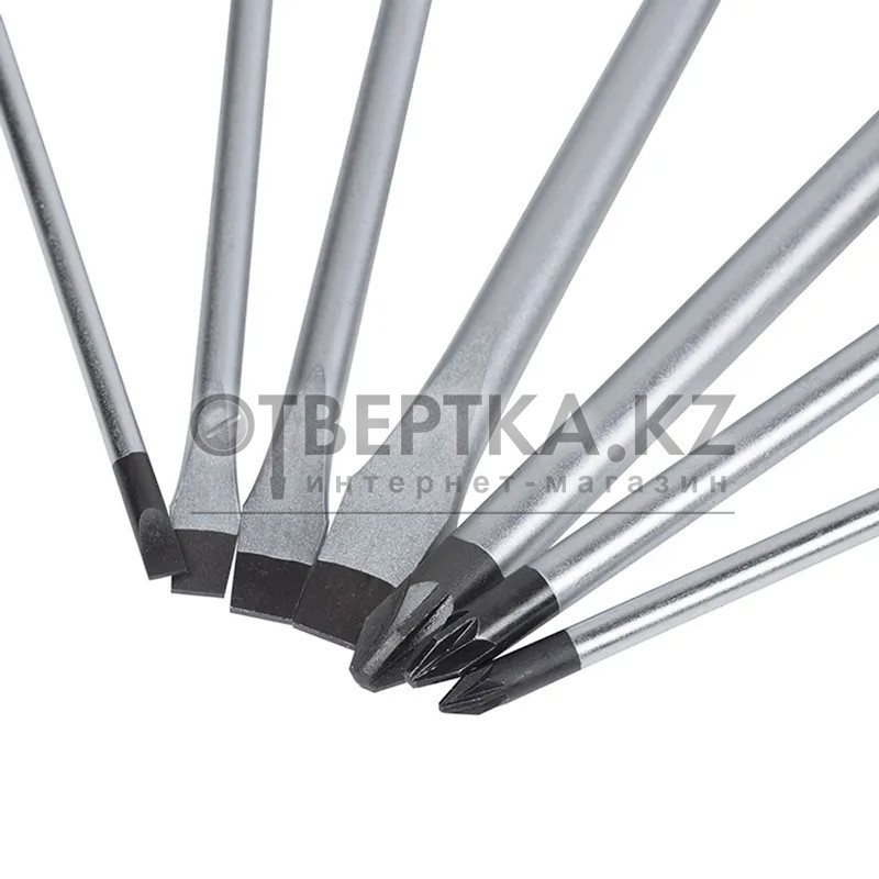 - 4 плоские отвертки SL 3x75, 5x75, 5x100, 8x150, 8x200, 6.5x100, 6.5x150, 6.5x38 мм